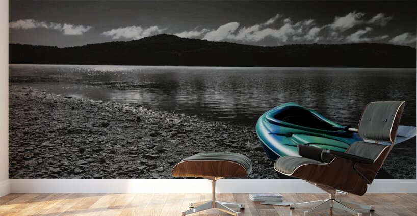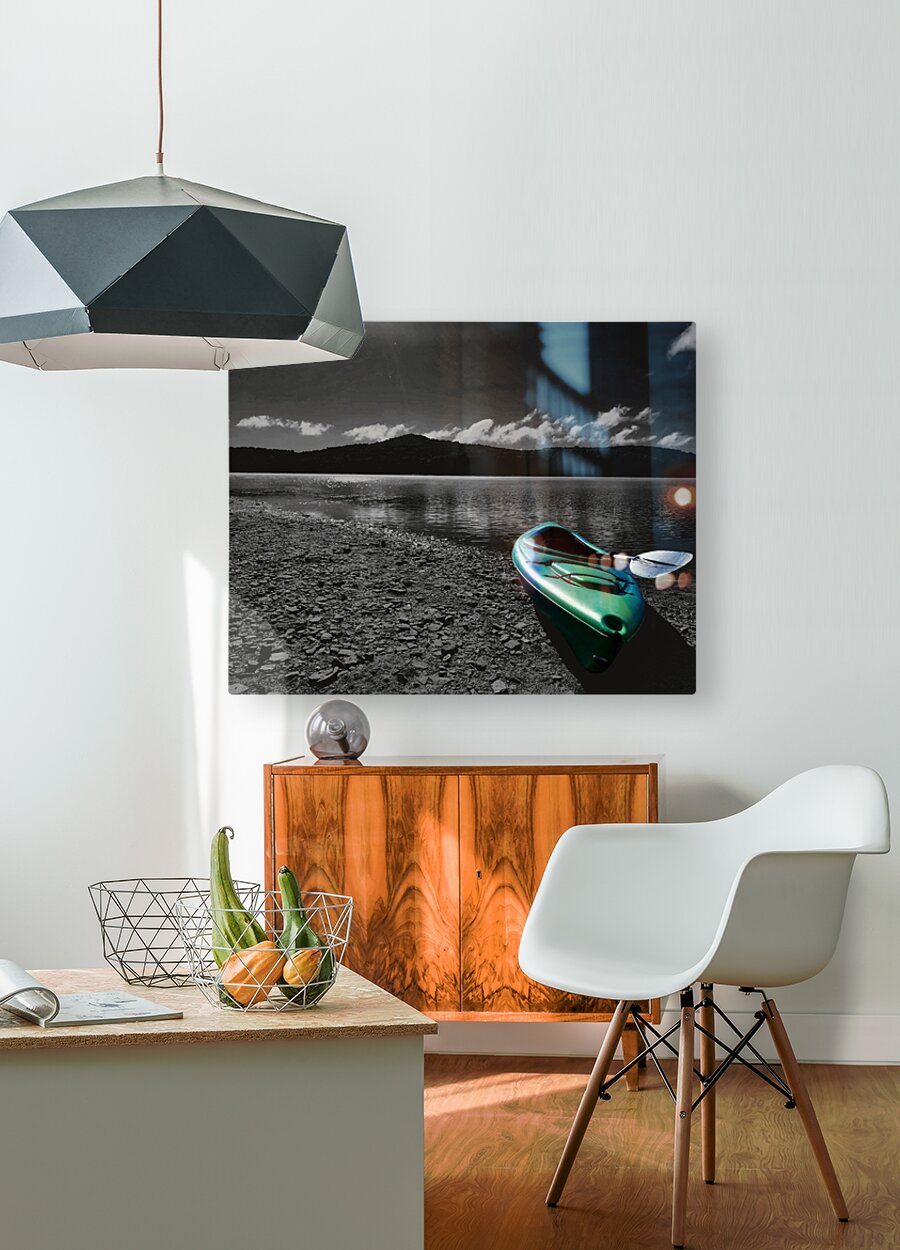 Green-Blue Kayak Wood print