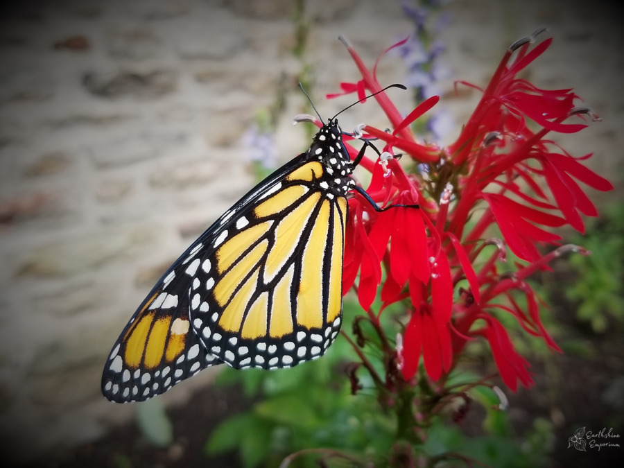 MONARCH ON CARDINAL FLOWER