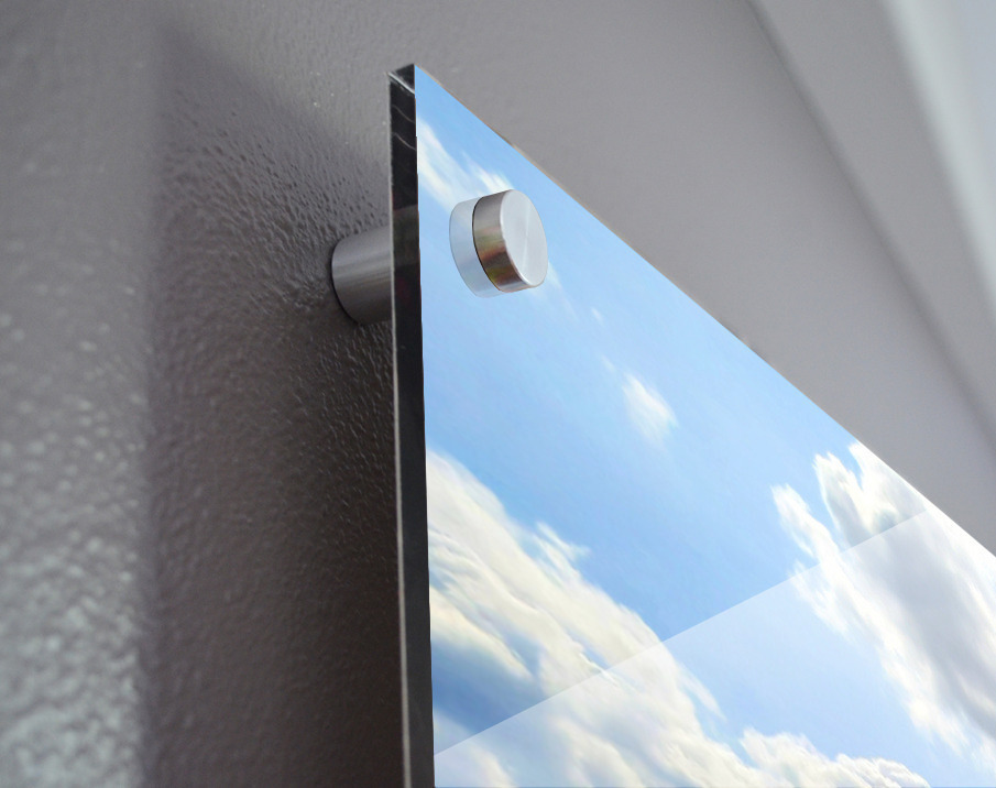 Printed to the edge - Ready to hang - provided with 4 premium polished aluminum stand off ( wall screws and mounting hardware provided )